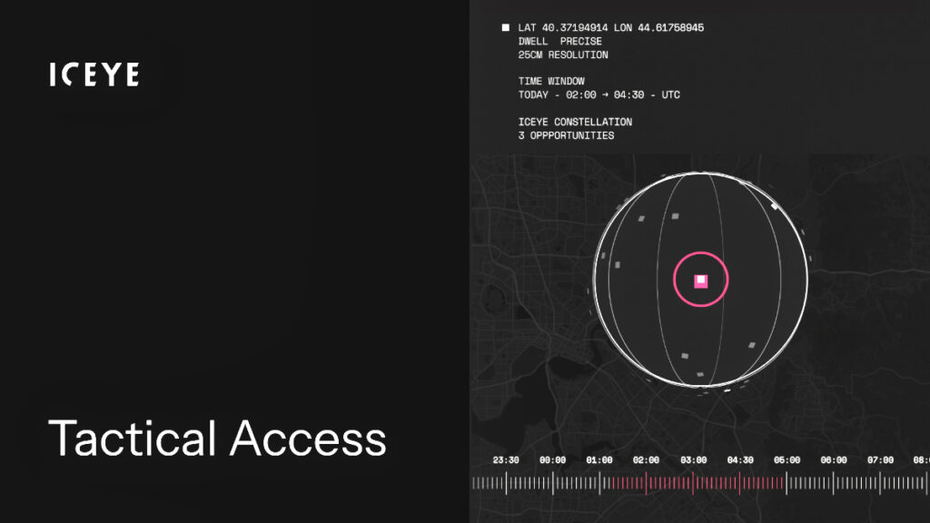 ICEYE’s Tactical Access is the only commercial SAR service providing guaranteed imaging slots, sub-hour delivery, and sovereign in-country processing – ensuring defense and intelligence organizations receive critical imagery when and where it’s needed.
